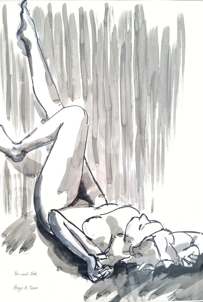 Life drawing. Pen and ink – 55x73cm framed.